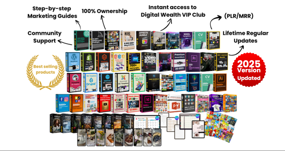 60+ Million Done For You Premium Digital Products bundle Digital Downloads, perfect for content creators, graphic designers, video editors, developers, and digital entrepreneurs!